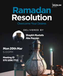 Read MoreJoin us for this important online session with Shaykh Mustafa Abu Rayyan as he goes through how to overcome desires, make this Ramadan life changing, and a Ramadan Q&A session!