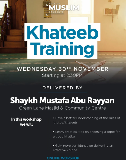 If you would like sign up for this online workshop please DM or email bookings@britishmuslimstudents.co.uk
